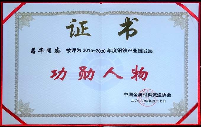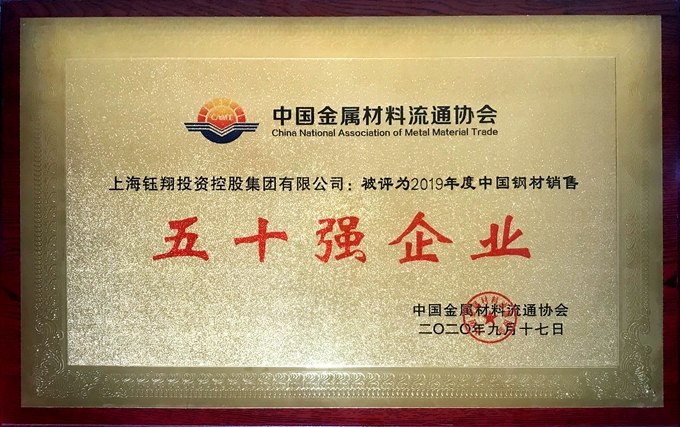 近日,中國金屬材料流通協會第十五屆中國鋼鐵流通促進大會在石家莊隆重召開。會上,上海鈺翔投資控股集團入選“2019年度鋼材銷售五十強企業”和“2015-2020年度鋼鐵產業鏈發展功勛企業”,集團董事長葛華榮膺“2015-2020年度中國金屬材料流通協會功勛人物”。