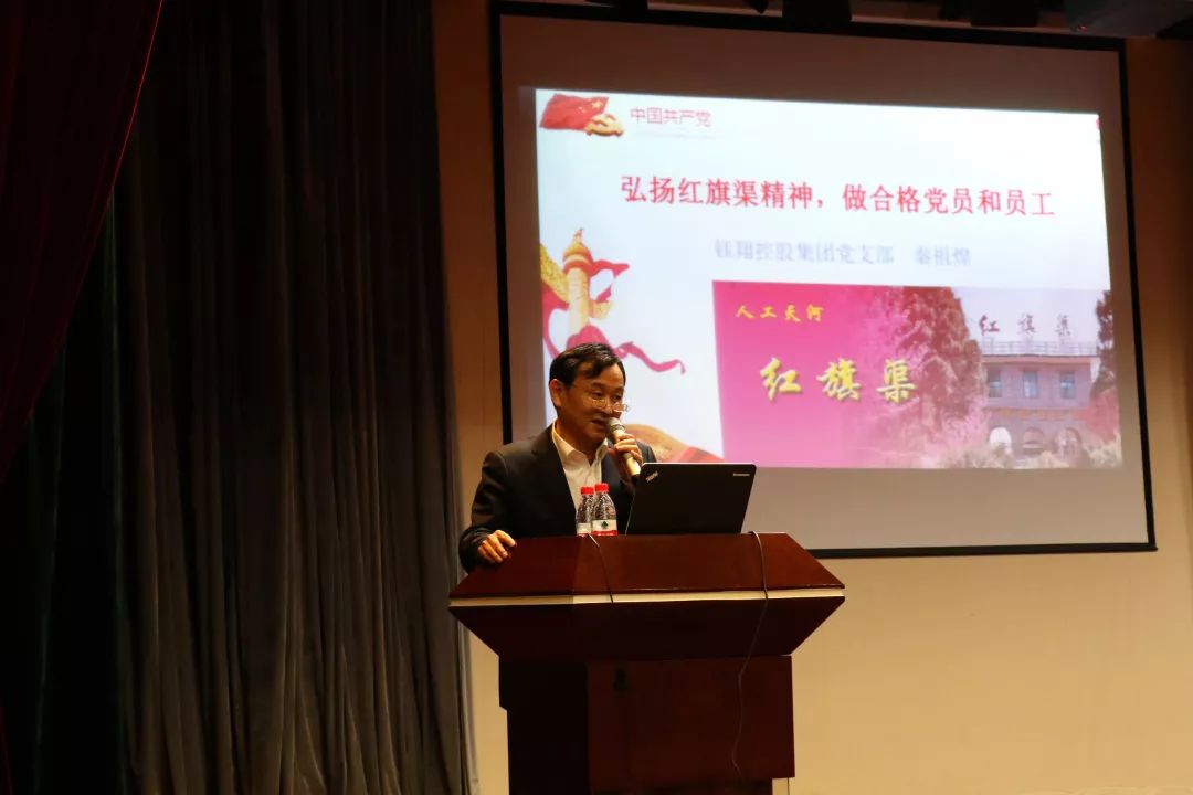 秦祖煌書記從紅旗渠工程的建設情況,紅旗渠精神的本質內涵,弘揚紅旗渠精神、做合格黨員和員工三個方面進行了講授。紅旗渠是20世紀60年代河南省安陽市林縣人民為解決用水問題,在極其惡劣的自然環境和極端匱乏的物質條件下,以10萬血肉之軀苦戰十個春秋,從太行山腰修建的引濁漳河水入林縣的工程。紅旗渠全長1500公里,其中70.6公里的總干渠全部開鑿在峰巒迭嶂的太行山腰。紅旗渠被譽為“人工天河”、“中國水長城”、“世界第八大奇跡”,它的建成徹底解決了林縣人民的缺水問題,創造了巨大的物質財富,更是孕育了“自力更生、艱苦創業、團結協作、無私奉獻”的紅旗渠精神。秦書記在講授中講述了紅旗渠開鑿過程中一個個無私奉獻、不怕犧牲的感人故事,使現場員工非常感動,秦書記在授課結束前強調,弘揚紅旗渠精神、做合格黨員和員工首先要堅定理想信念,其次要激發艱苦創業的熱情,再次要堅持崇德守紀,最后要堅持黨和人民的利益高于一切。